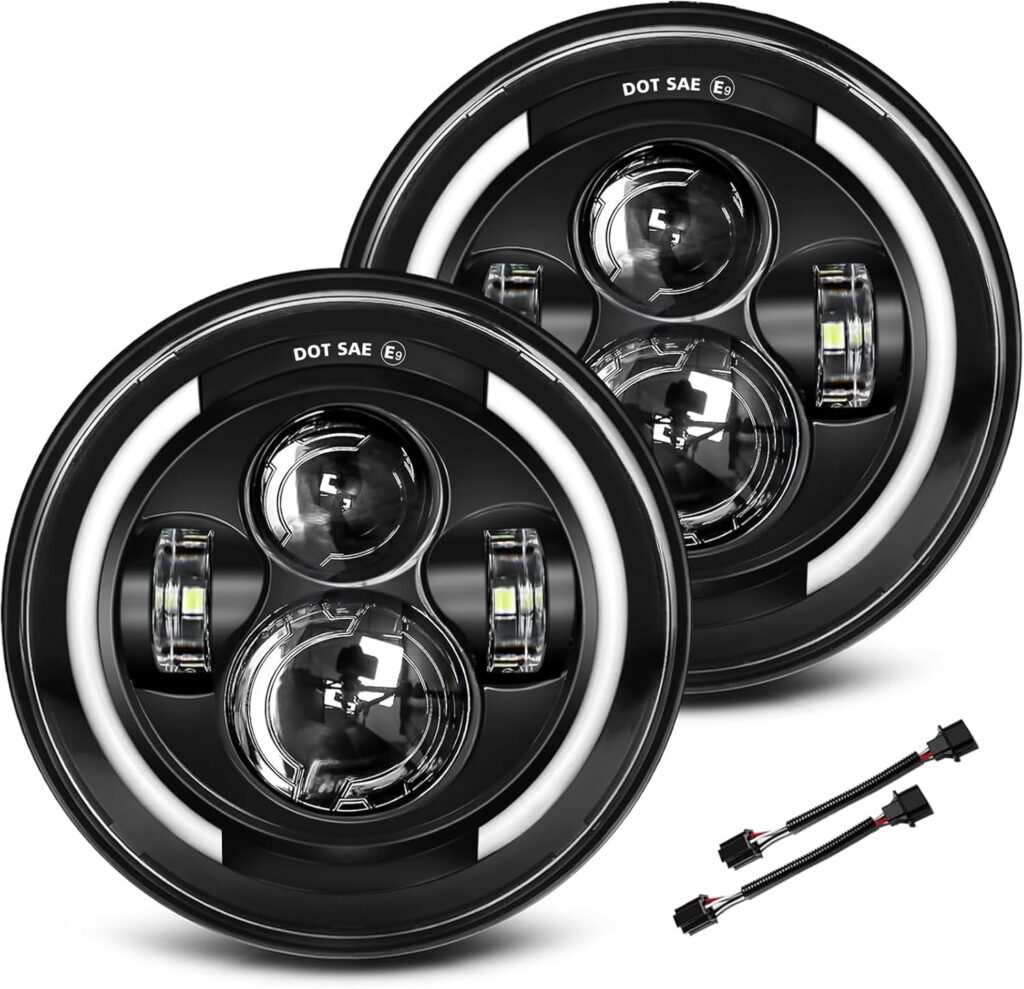 04/7 inch led Headlight Round 2pc Projector 7 inch Halo led Headlight H6024 DOT Approved Hi/Lo Beam DRL Amber Turn Signal Compatible with Jeep Wrangler JK TJ CJ Compatible with Chevy and miata
