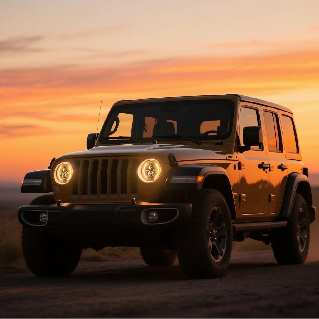 7″ Round LED Jeep Wrangler Headlights 2pcs 200W Halo Angel Eye Ring DRL & Amber Turn Signal Lights H/L beam for Jeep Wrangler JK LJ CJ Hummer H1 H2
