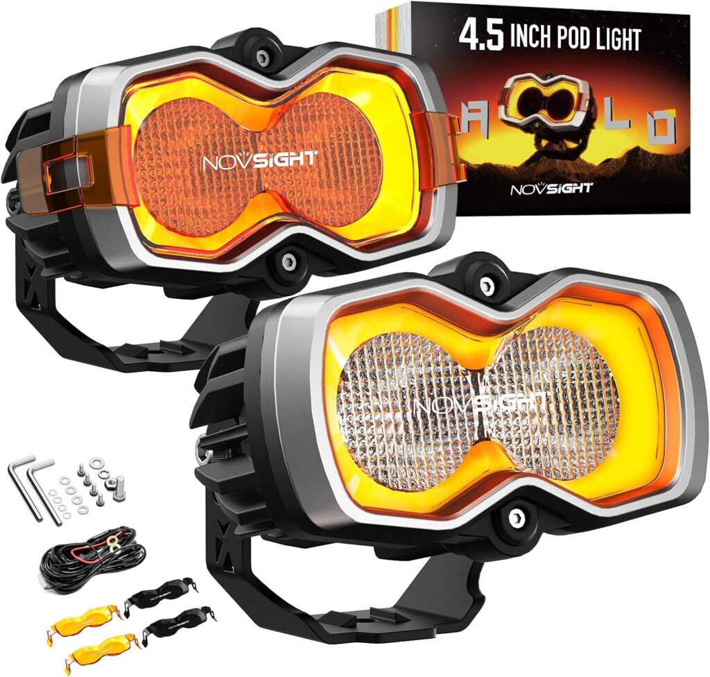NOVSIGHT 4.5 Inch LED Pod Lights – HALO Pro Series LED Flood Ditch Beam w/Dynamic DRL Modes, 120W Ultra Bright Off Road Light for Truck Jeep Pickup Ford ATV UTV, 2PCS(Red Dot Award 2025 Winner)