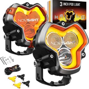 NOVSIGHT 3 Inch LED Pod Lights - Halo Pro Series LED Spot Flood Beam Combo w/Dynamic DRL Modes