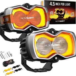 Home Lighting LED Lights NOVSIGHT 4.5 Inch LED Pod – Red Dot Award 2025 Winner Halo Series Offroad Brake & Back Up Reverse Light Combo with Red DRL, Ultra Bright LED Pod Light for Truck Wrangler Jeep Pickup Ram SUV, 1PCS